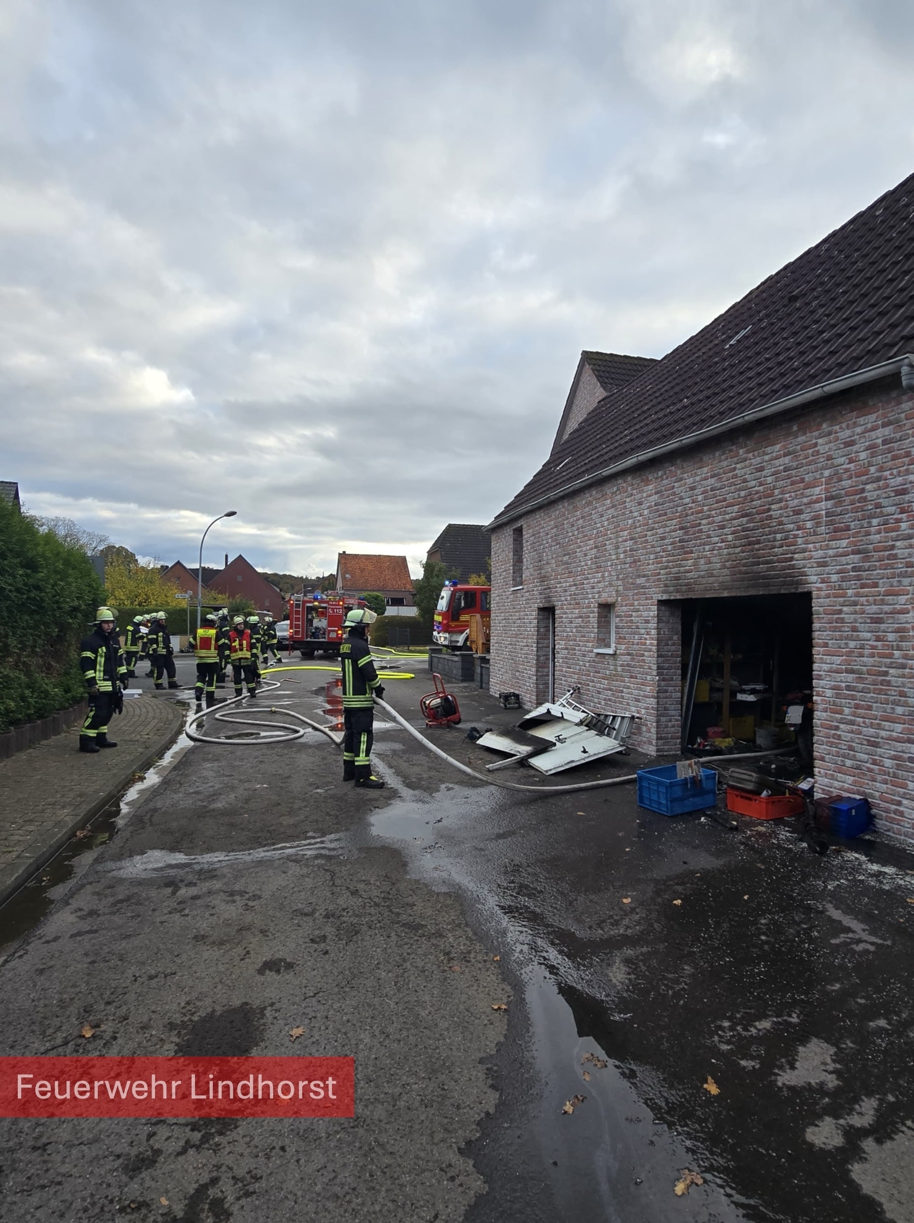 Zunächst wurden die Feuerwehren Beckedorf und Lindhorst zu dem Feuer alarmiert, aus einer Garage wurde ein starke Rauchentwicklung gemeldet. Die Einsatzkräfte leiteten umgehend eine Brandbekämpfung mit zwei Trupps unter Atemschutz ein. Das Garagentor wurde mit Hilfe einer Rettungssäge geöffnet.