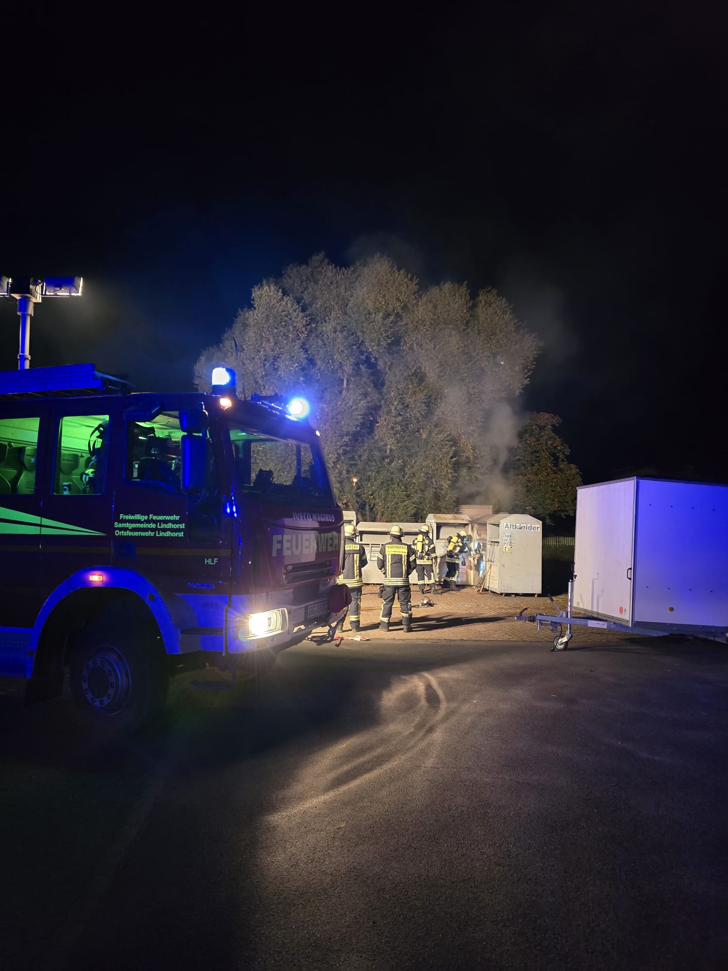 Die Feuerwehr Lindhorst wurde am Sonntagabend um 21 Uhr zu einem Brandeinsatz am Festplatz neben dem Schwimmbad in Lindhorst alarmiert.