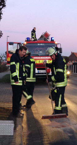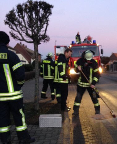 Die Feuerwehr Lindhorst wurde am Nachmittag in die Lüdersfelder Straße gerufen. Ein Autofahrer bemerkte, dass sein Fahrzeug Betriebsstoffe verlor und so die Fahrbahn verunreinigte. Die Einsatzkräfte streuten die Betriebsstoffe mit Bindemittel ab und beseitigten so die Gefahr für den Verkehr.