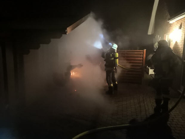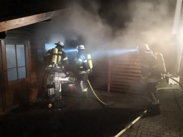 Die Einsatzkräfte mussten Teile des Daches entfernen, um die Flammen löschen zu können. Nachdem das Feuer gelöscht wurde, kontrollierte die Feuerwehr mit der Wärmebildkamera auf mögliche Glutnester, was nicht der Fall war.