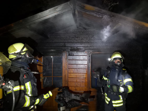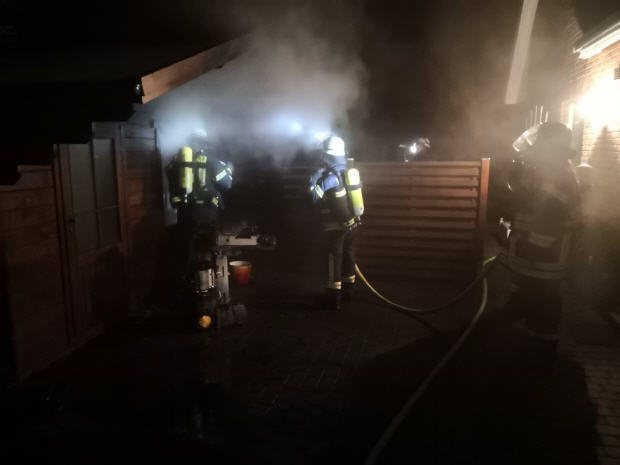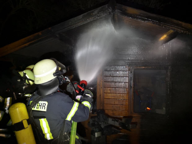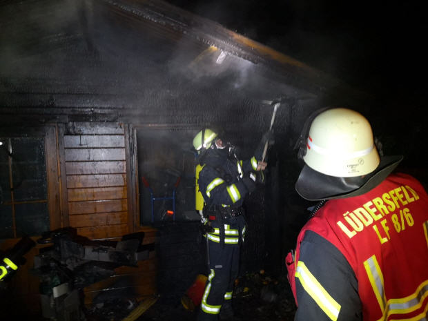 Am Abend alarmierte die Rettungsleitstelle die Feuerwehren Lüdersfeld/Vornhagen und Lindhorst nach Lüdersfeld. Anwohner bemerkten dort eine Rauchentwicklung aus einem Garten. Dort stellten sie fest, dass eine Gartenhütte brannte. Das Feuer brach aus ungeklärter Ursache an einer Mülltonne aus, die an der Gartenhütte stand, wodurch das Feuer auf die Gertenhütte übergriff.