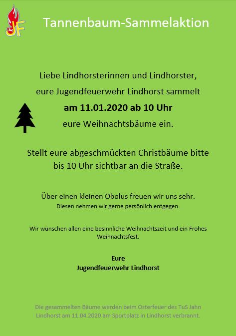 Die Jugendfeuerwehr Lindhorst führte am 11.01.2020 erstmals eine Tannenbaum-Sammelaktion durch.