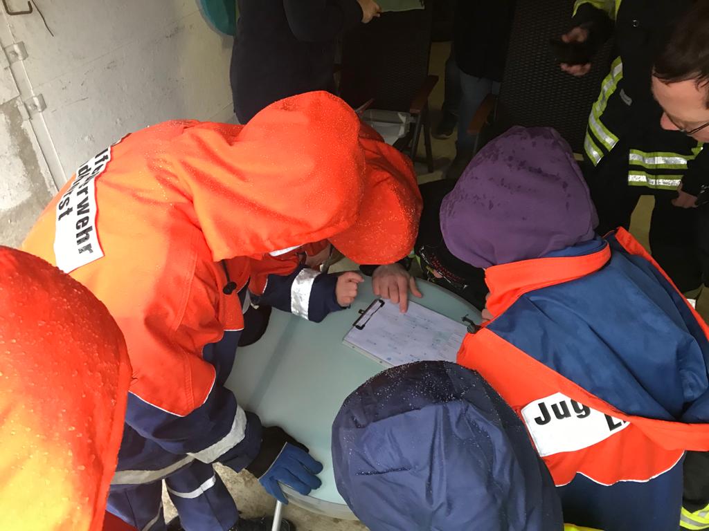 Während der Tour mussten Fragen auf einem Laufzettel beantwortet werden, die an die Gruppenmitglieder aus den verschiedenen Altersgruppen der teilnehmenden Abteilungen gestellt wurden. So mussten die Kinder aus der Kinderfeuerwehr Fragen aus ihren Diensten beantworten, die Jugendlichen aus der Jugendfeuerwehr ihrem Alter entsprechende Feuerwehrfragen und die Mitglieder der Einsatzabteilung Fragen, die ihr Feuerwehr- und Allgemeinwissen abfragten.