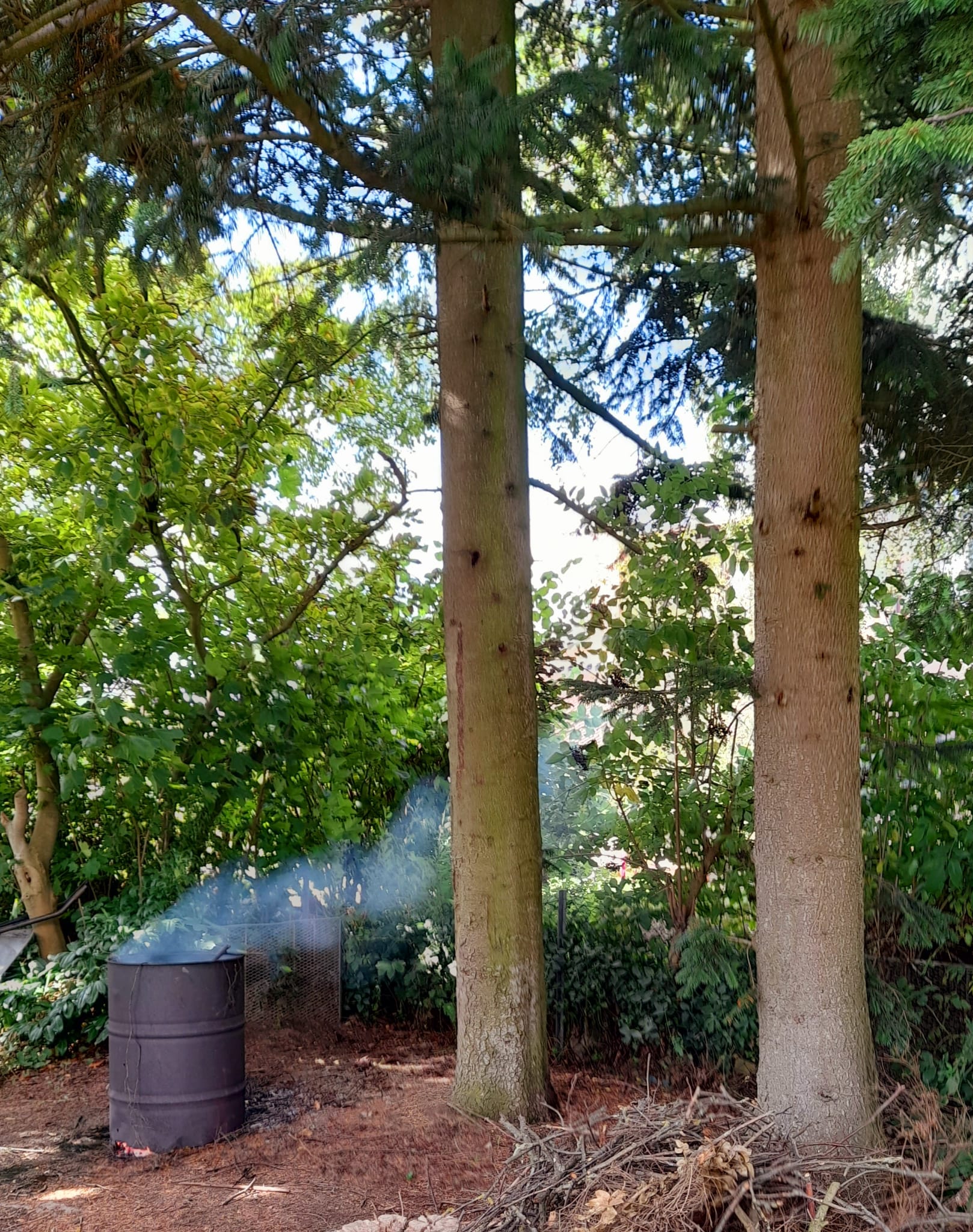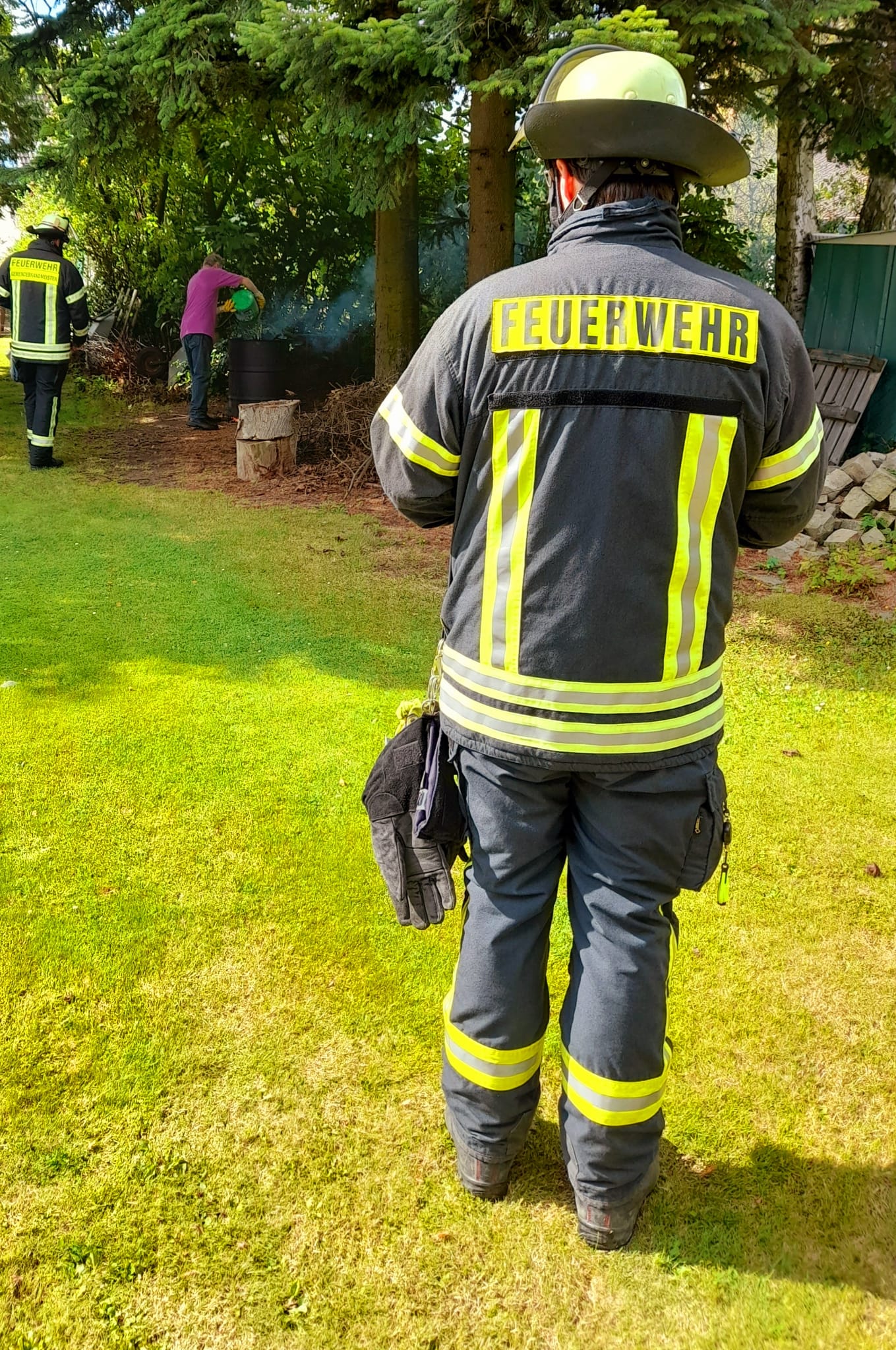 Vor Ort stellten die Einsatzkräfte fest, dass ein Anwohner Grünabfall in einer Feuertonne verbrannte. Es handelte sich also um kein Schadenfeuer. Da die Feuertonne dicht an Bäumen und Büschen stand, wurde der Eigentümer aufgefordert das Feuer selbst zu löschen und die Feuertonne an einem anderen Ort zu platzieren.