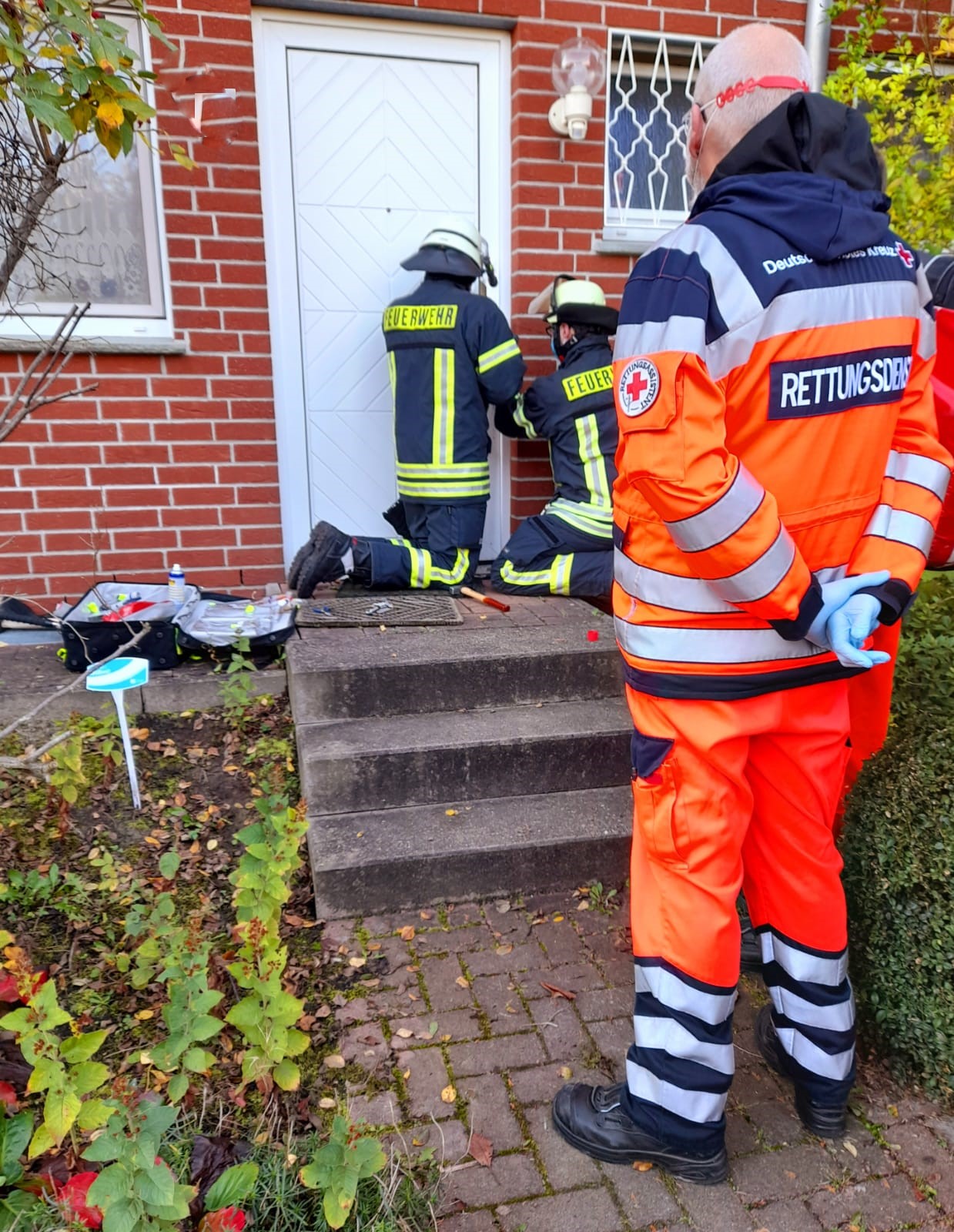 Eine Pflegekraft eines ambulanten Pflegedienstes wollte einen Patienten versorgen, dieser öffnete jedoch nicht die Haustür. Da kein Haustürschlüssel vorlag, und davon auszugehen war, dass dem Bewohner etwas zugestoßen war, mussten die ehrenamtlichen Einsatzkräfte die Haustür öffnen, um dem Rettungsdienst Zugang zum Haus verschaffen zu können. Aufgrund von Sicherheitsmaßnahmen zum Einbruchsschutz an der Haustür, konnte diese nicht mit speziellem Werkzeug geöffnet werden, sodass die Einsatzkräfte Brechwerkzeug anwenden mussten. Die Tür konnte geöffnet und den Einsatzkräften des Rettungsdienstes und der Polizei Zutritt zum Haus verschaffen werden.