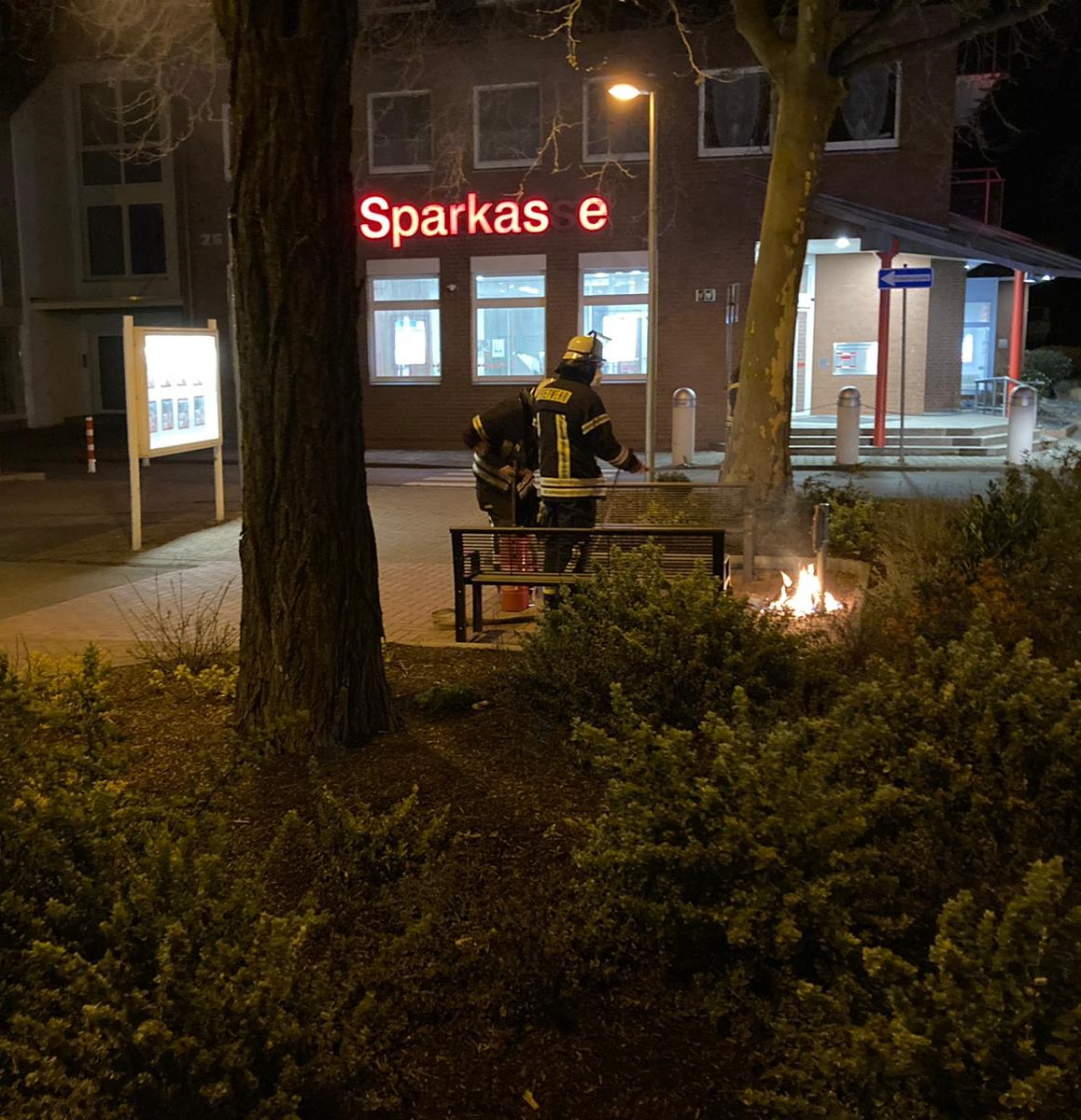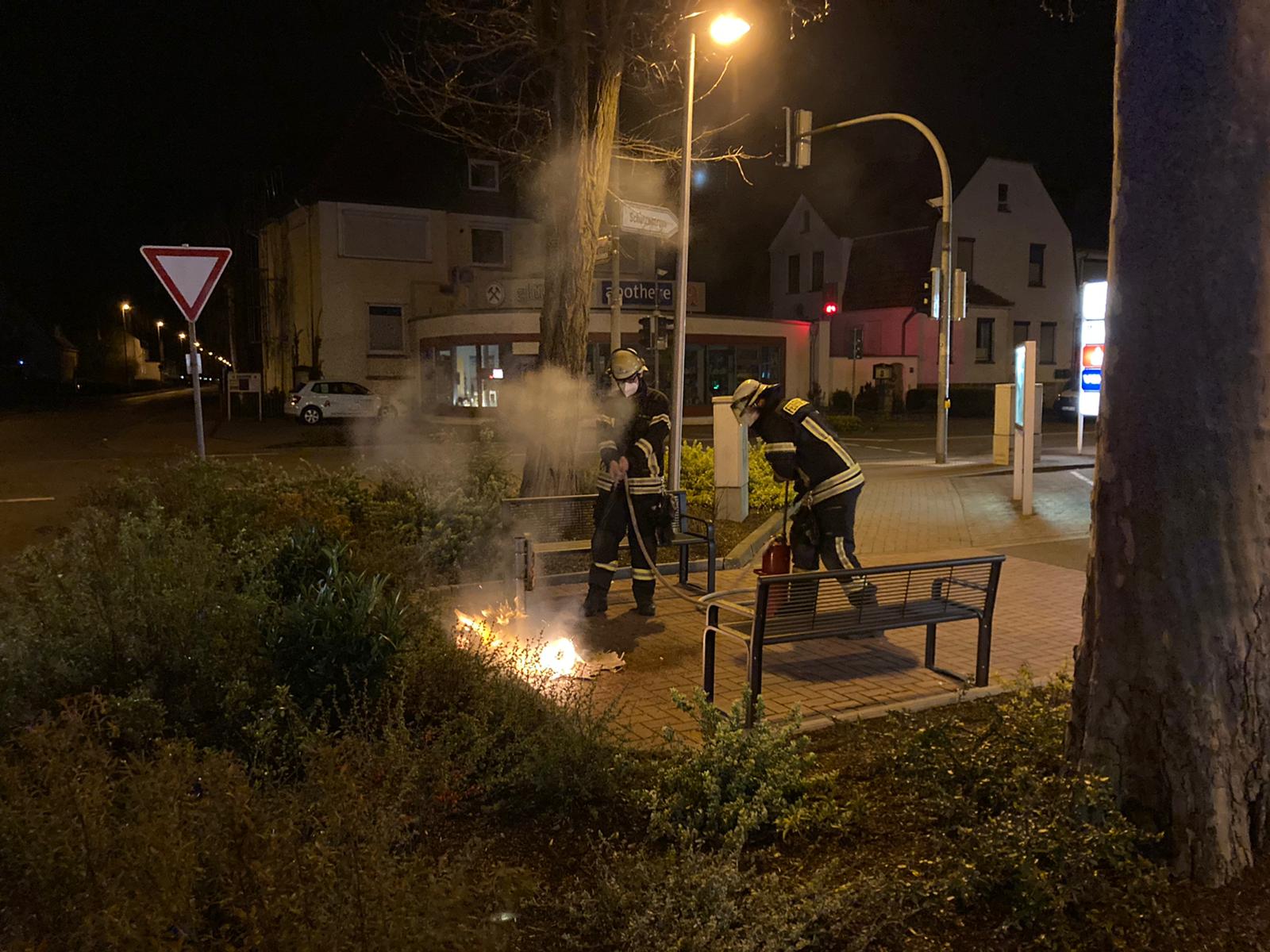 Am Marktplatz brannte ein Mülleimer. Der Behälter war durch die Hitze bereits geschmolzen, die Reste lagen auf dem Boden und brannten. Mit einer Kübelspritze und 20 Litern Wasser konnten die Einsatzkräfte das Feuer schnell löschen, mit einer Wärmebildkamera wurde der Brandort kontrolliert.