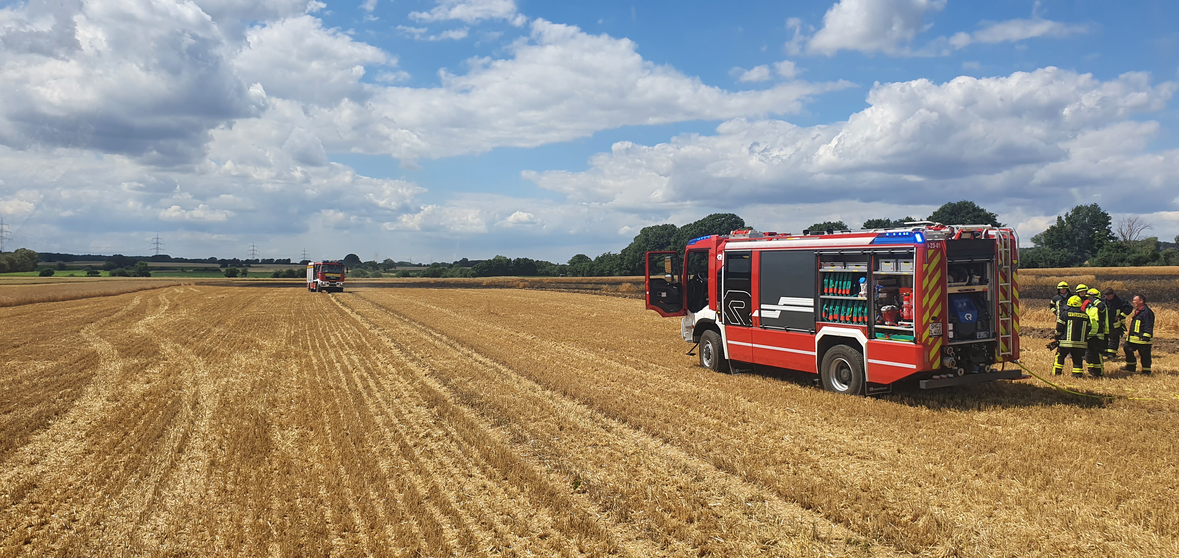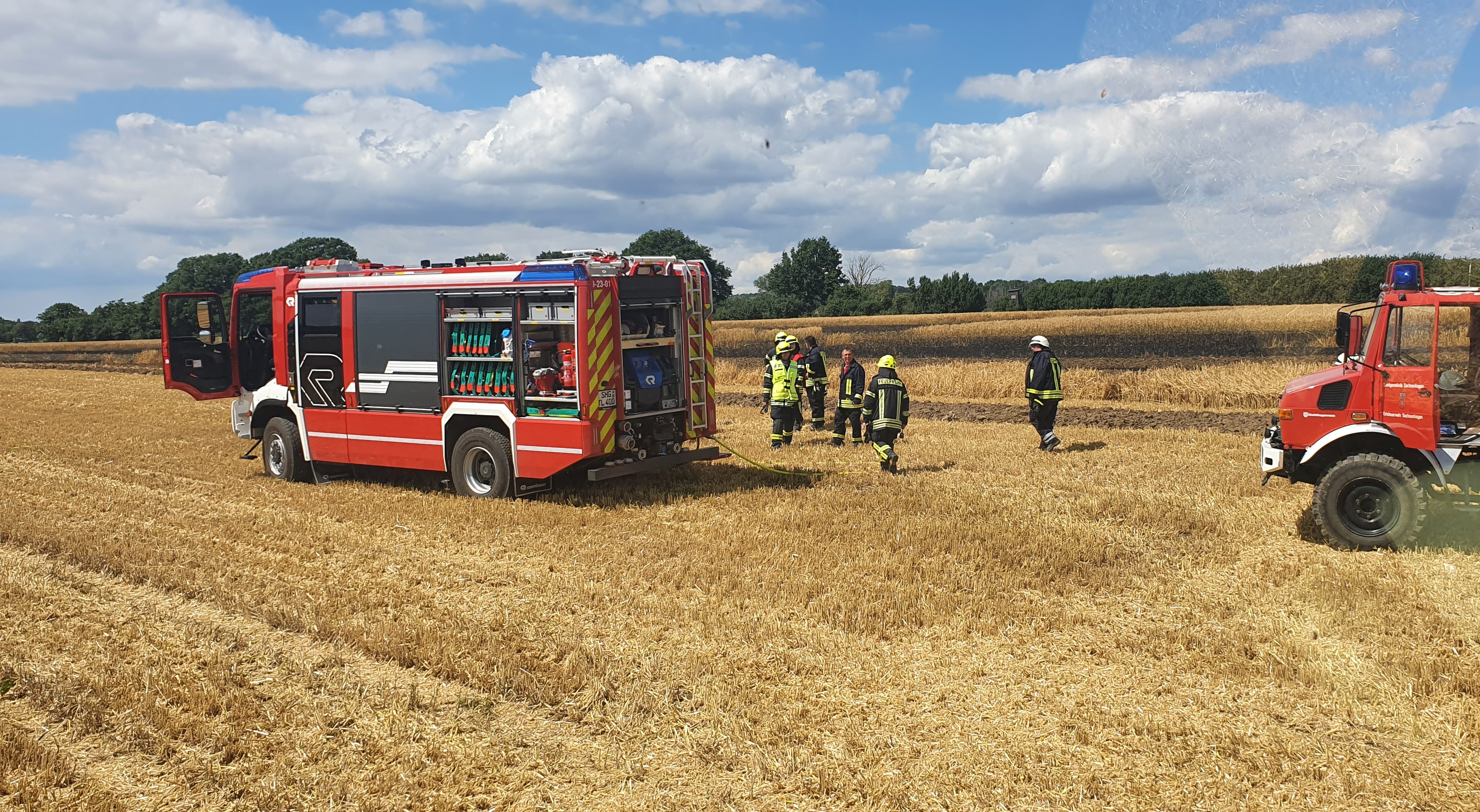 Das Feuer wurde durch die Einsatzkräfte der Feuerwehr von mehreren Seiten bekämpft, sodass eine Ausbreitung auf das landwirtschaftliche Gerät oder weitere Felder verhindert werden konnte. Landwirte unterstützen die Einsatzkräfte, indem sie auf noch nicht vom Feuer betroffenen Flächen Brandschneisen mit einem Grubber anlegten.