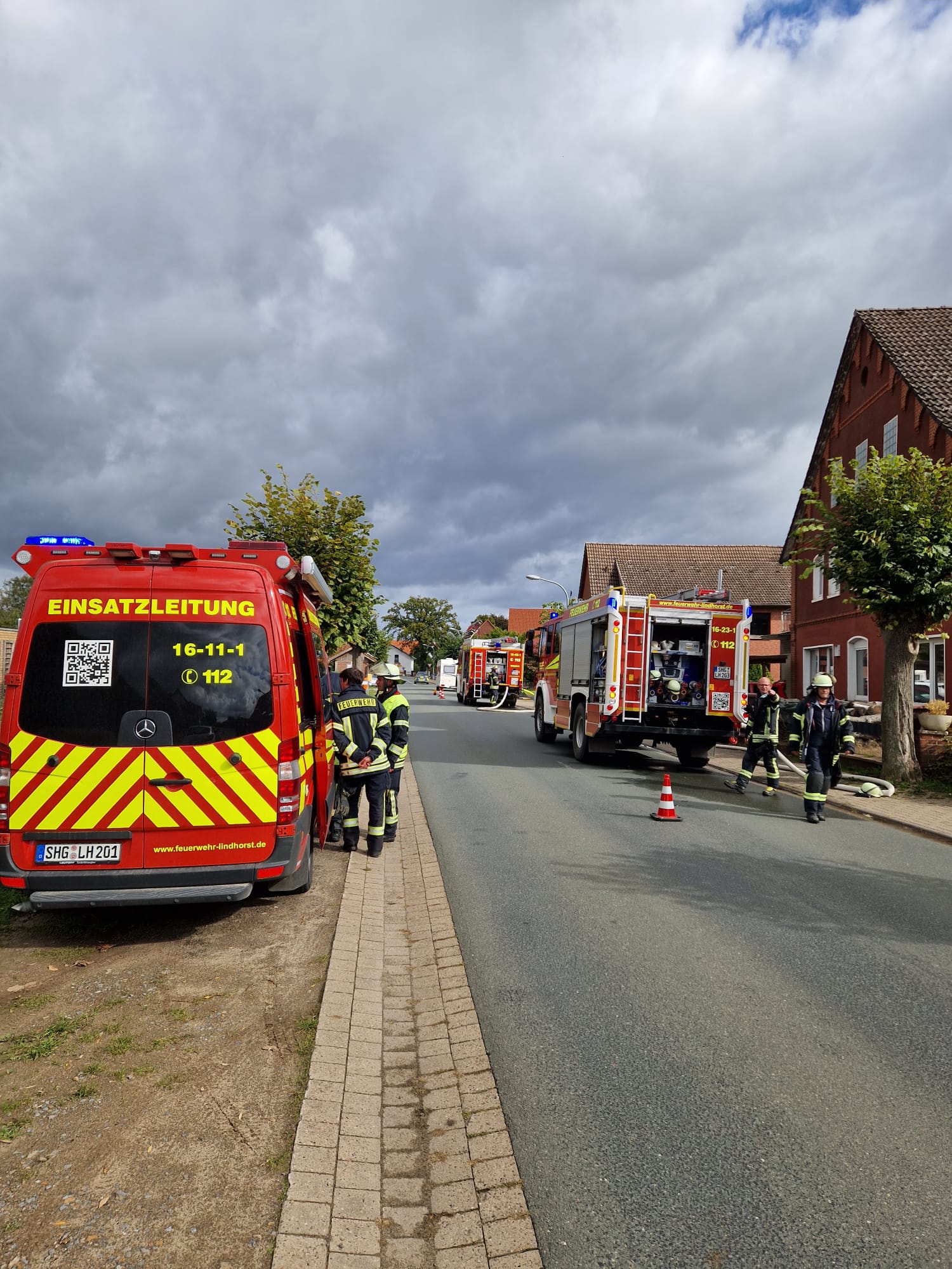 Nach rund einer Stunde und 45 Minuten war der Einsatz beendet. Im Einsatz war die Feuerwehr Lindhorst mit 13 Einsatzkräften und drei Fahrzeugen sowie der Gemeindebrandmeister, weitere Kräfte waren am Feuerwehrhaus in Bereitstellung, mussten die Einsatzstelle aber nicht mehr anfahren. Die Polizei war ebenfalls vor Ort.