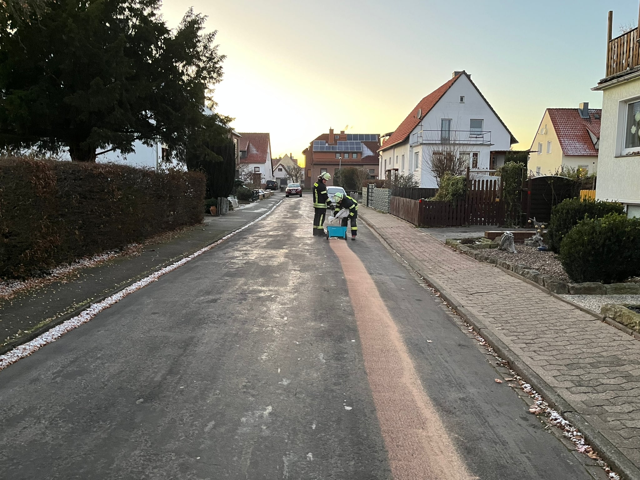 Zum zweiten Einsatz des Tages wurde die Feuerwehr Lindhorst gegen 16:15 Uhr durch die Integrierte Regionalleitstelle Schaumburg/Nienburg alarmiert. Auf einer Straße wurde eine Ölspur gemeldet, die Polizei forderte die Feuerwehr zur Beseitigung der Gefahr an.