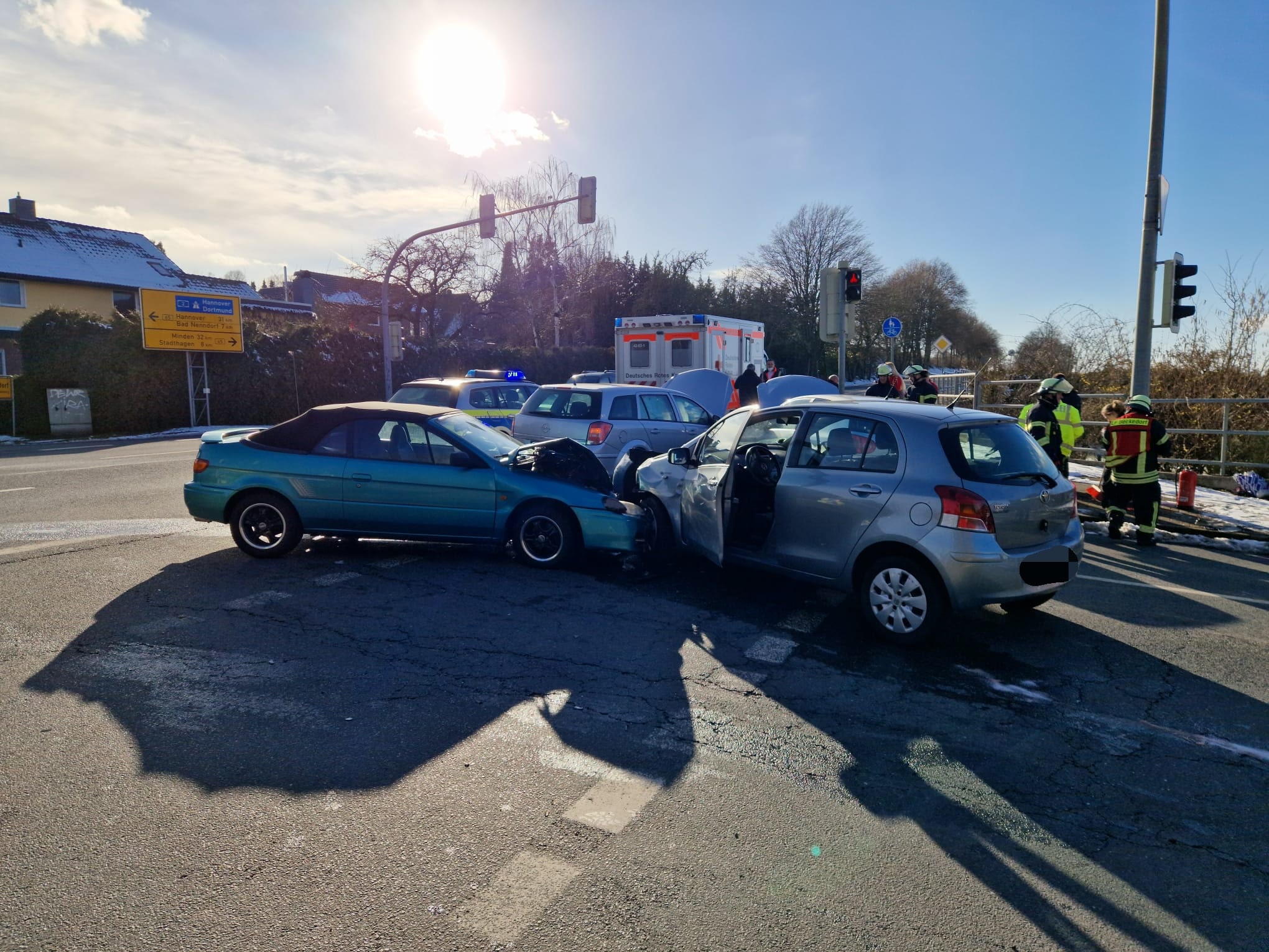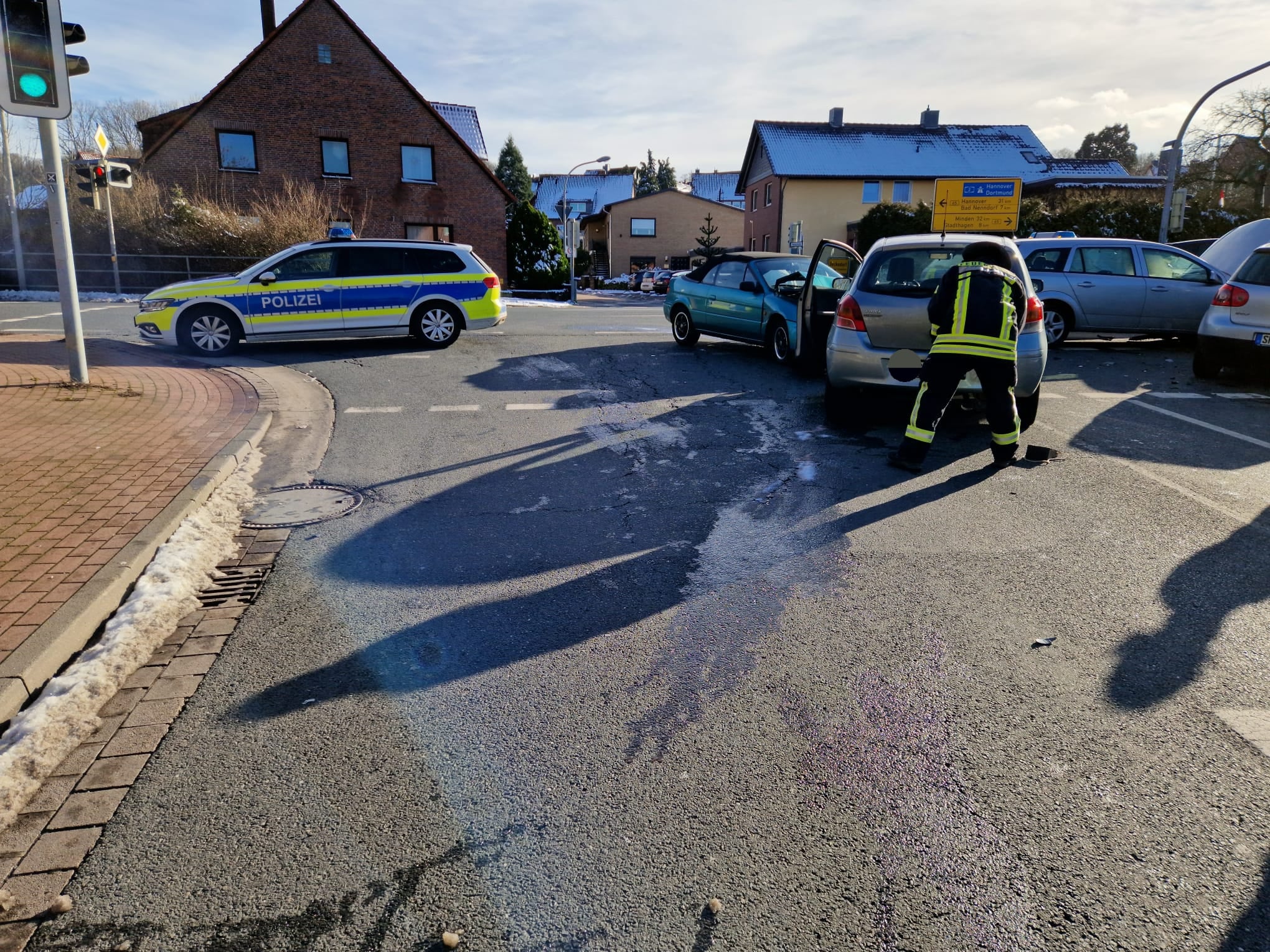 In Folge eines Verkehrsunfalles auf der Kreuzung forderte die Polizei die Feuerwehr aufgrund einer Rauchentwicklung aus dem Motorraum aus einem der beteiligten Fahrzeuge an.