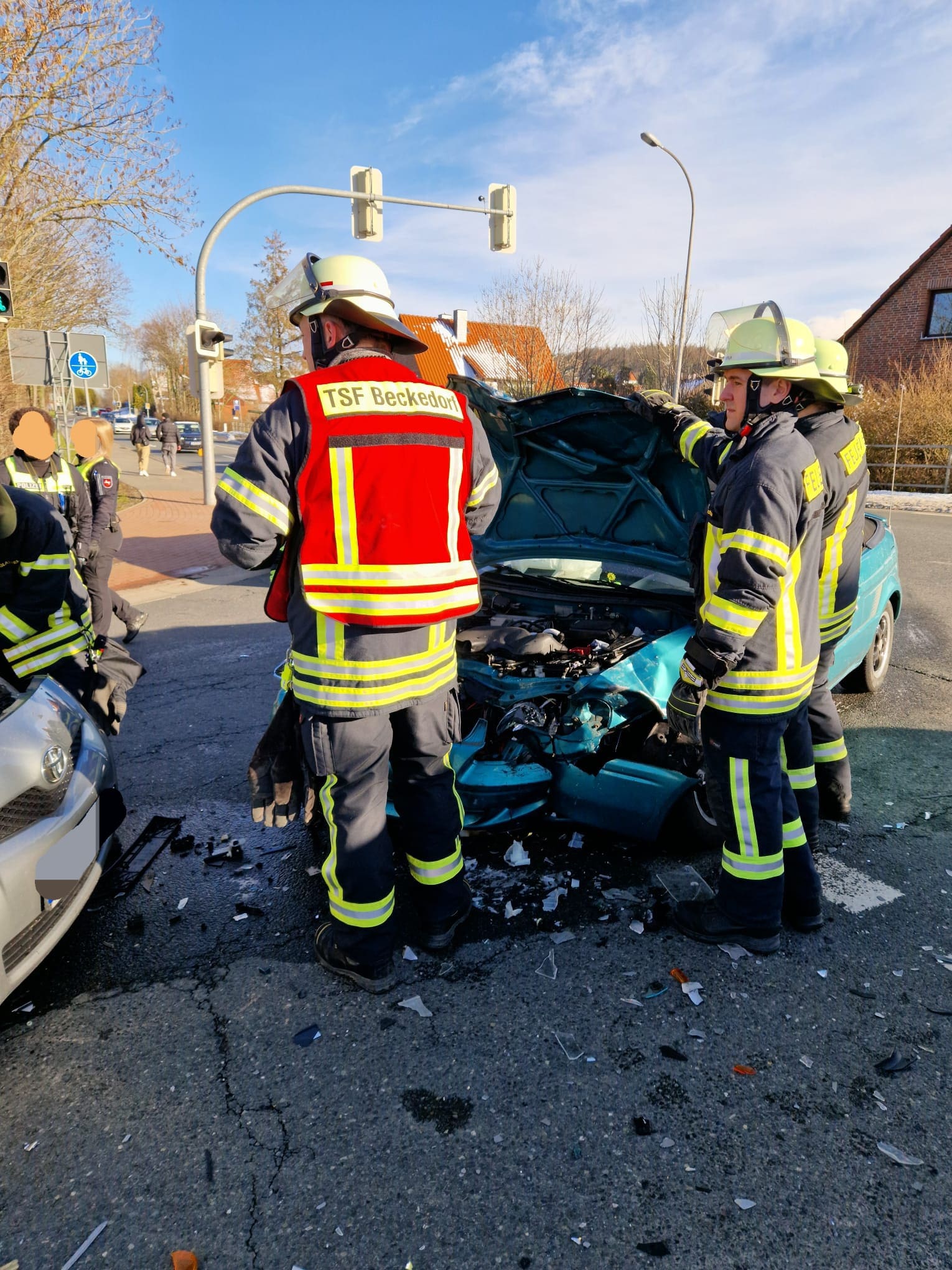 Die Feuerwehr Beckedorf setzte Bindemittel aufgrund auslaufender Betriebsstoffe ein und klemmte bei allen beteiligten Fahrzeugen die Batterien ab. Im Verlauf unterstützte die Feuerwehr zudem die Polizei bei der Vollsperrung der Kreuzung für die Dauer der Unfallaufnahme und Bergungsarbeiten.