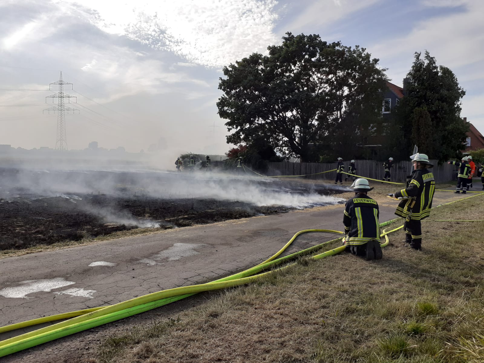 Hier brannte ein an ein Wohngebiet angrenzendes Feld auf einer Größe von rund 100 mal 100 Metern.