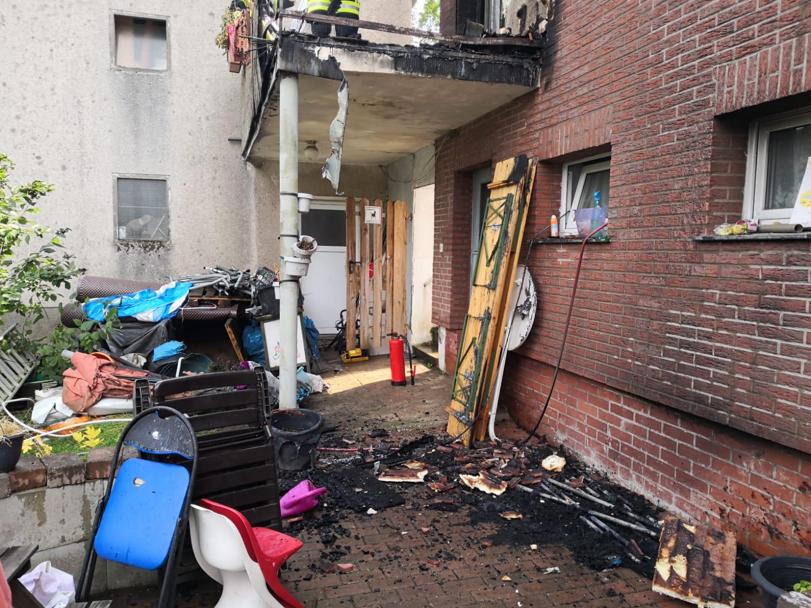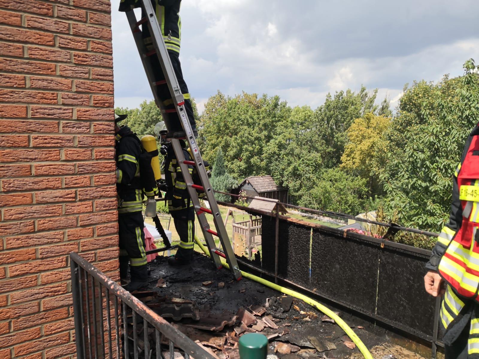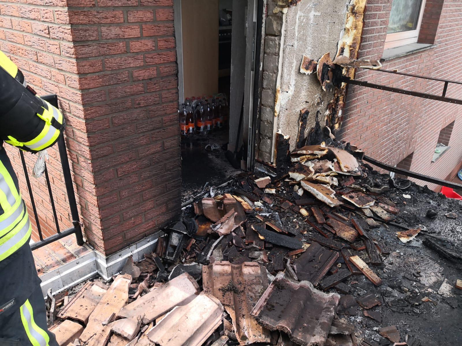 Beim Eintreffen der Einsatzkräfte an der Einsatzstelle konnte an der rückwärtigen Gebäudeseite brennender Unrat festgestellt werden, wodurch bereits die Fassade in Brand geraten war sowie das Gebäude verraucht wurde. Das Feuer hat dabei zudem schon Teile des Daches beschädigt und drohte auf dieses überzugreifen.
