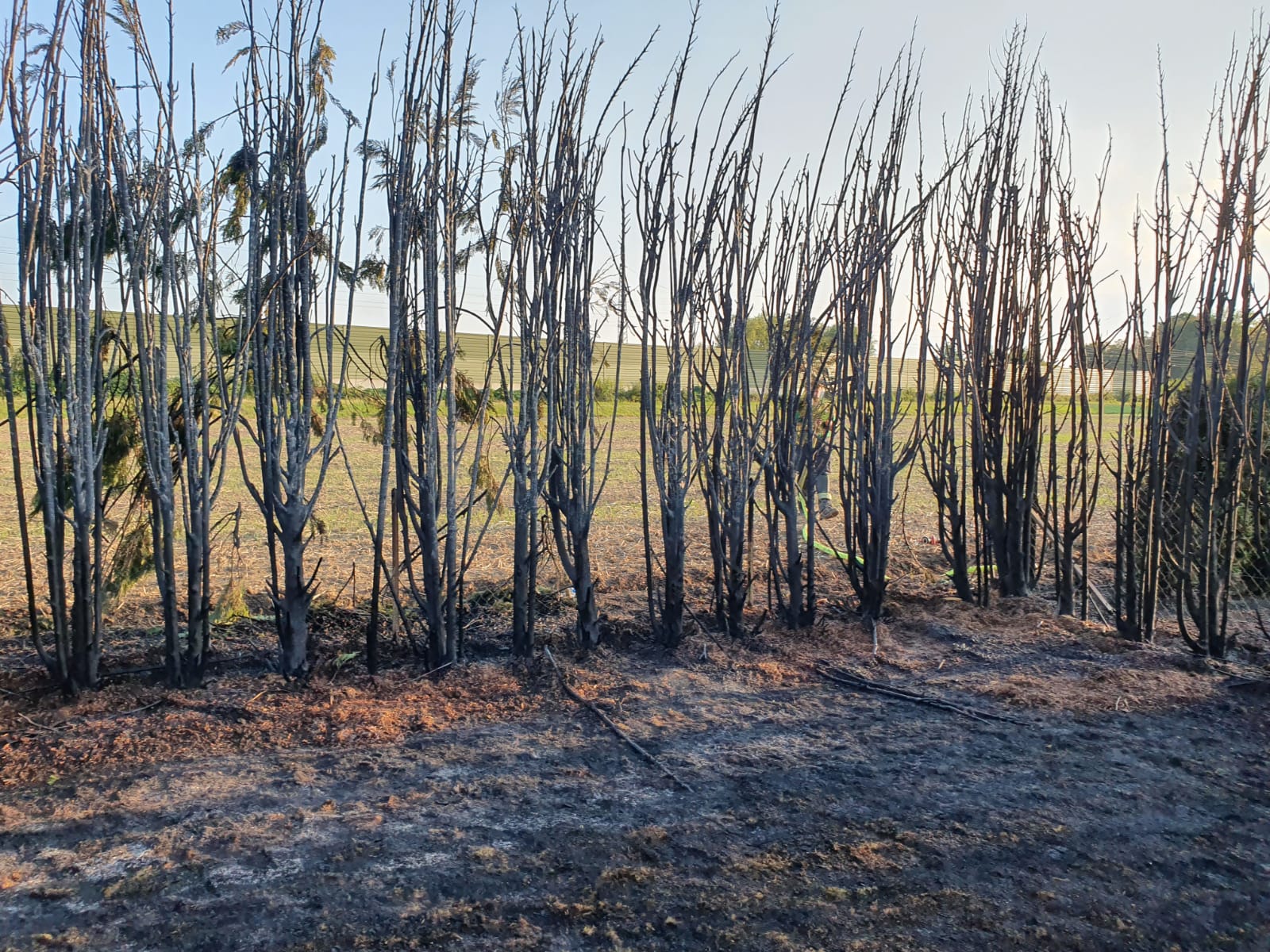 Der Einsatzleiter ordnete zudem an, auch die umliegenden Grundstücke und Gebäude zu überprüfen, um festzustellen, ob durch den Funkenflug weitere Schäden zu befürchten waren, was glücklicherweise nicht der Fall war.