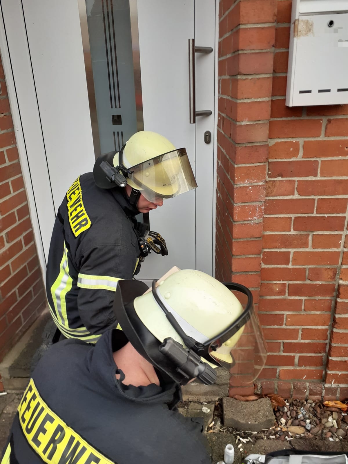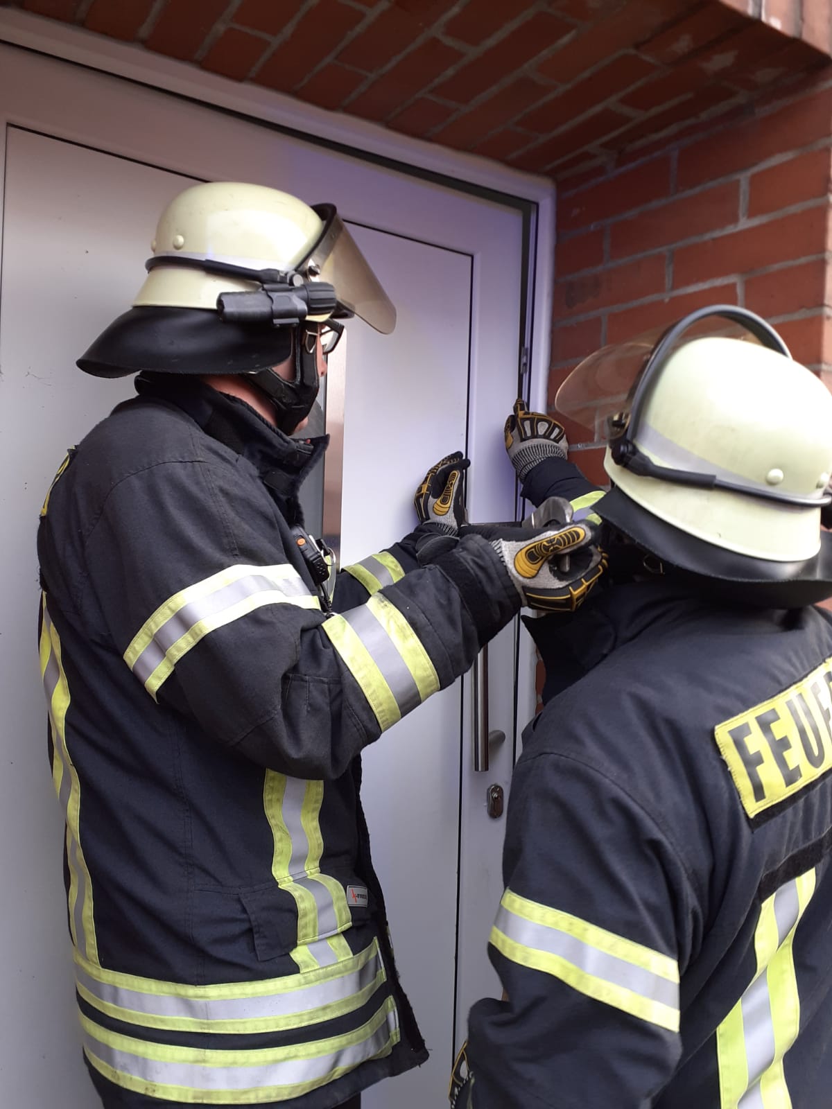 Die Feuerwehr öffnete die Wohnungstür schadenfrei mit Hilfe eines Halligan Tools und konnte den Kräften vom Rettungsdienst und der Polizei so Zutritt zur Wohnung verschaffen.
