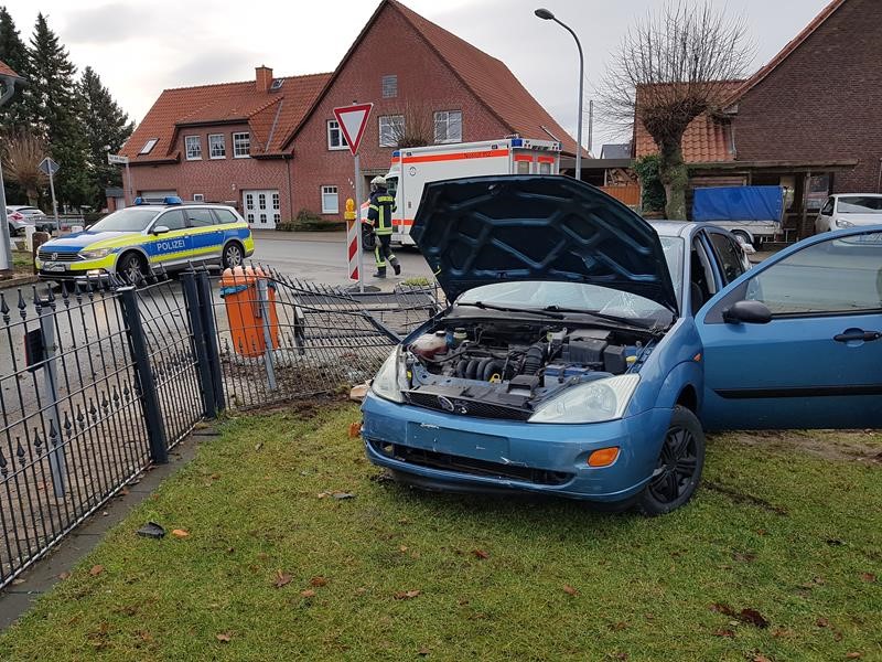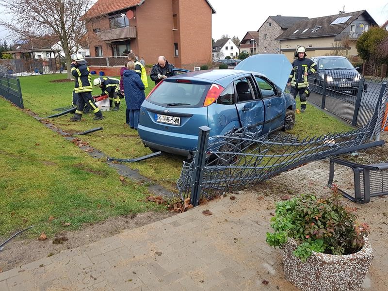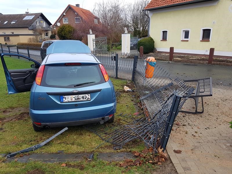 Das Fahrzeug kam von der Straße ab und kollidierte auf der anderen Straßenseite mit einem Zaun, der auf einer Länge von rund 10 Metern aus der Befestigung gerissen wurde, dabei wurden Motorhaube und Windschutzscheibe ebenfalls stark beschädigt. Der Wagen kam im Garten eines Wohnhauses zum Stehen.