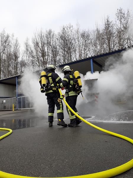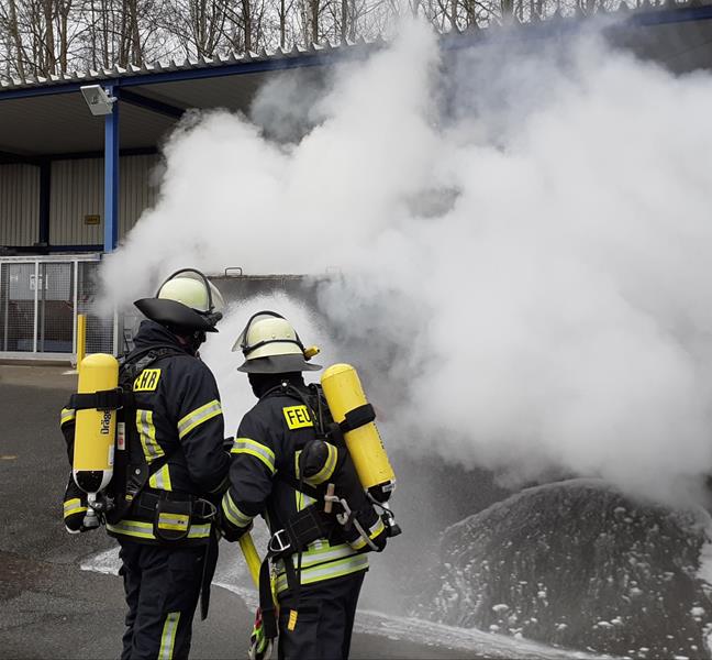 Anschließend wurde der Container geöffnet und gefahrlos abgelöscht.