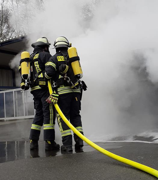 Zuvor wurde mittels einer Seilwinde der Container, welcher unter einem Schleppdach stand, etwas hervorgezogen, um die Gefahr einer Brandausbreitung zu verhindern.