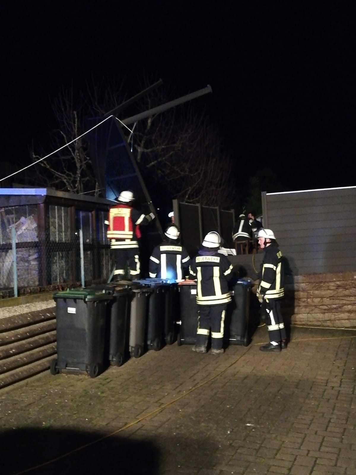 Ein Gartenpavillon wurde durch eine Böe erfasst und aus der Befestigung gerissen. Er wehte teilweise auf ein Nachbargrundstück und drohte auf die Straße zu wehen und weitere Schäden anzurichten.