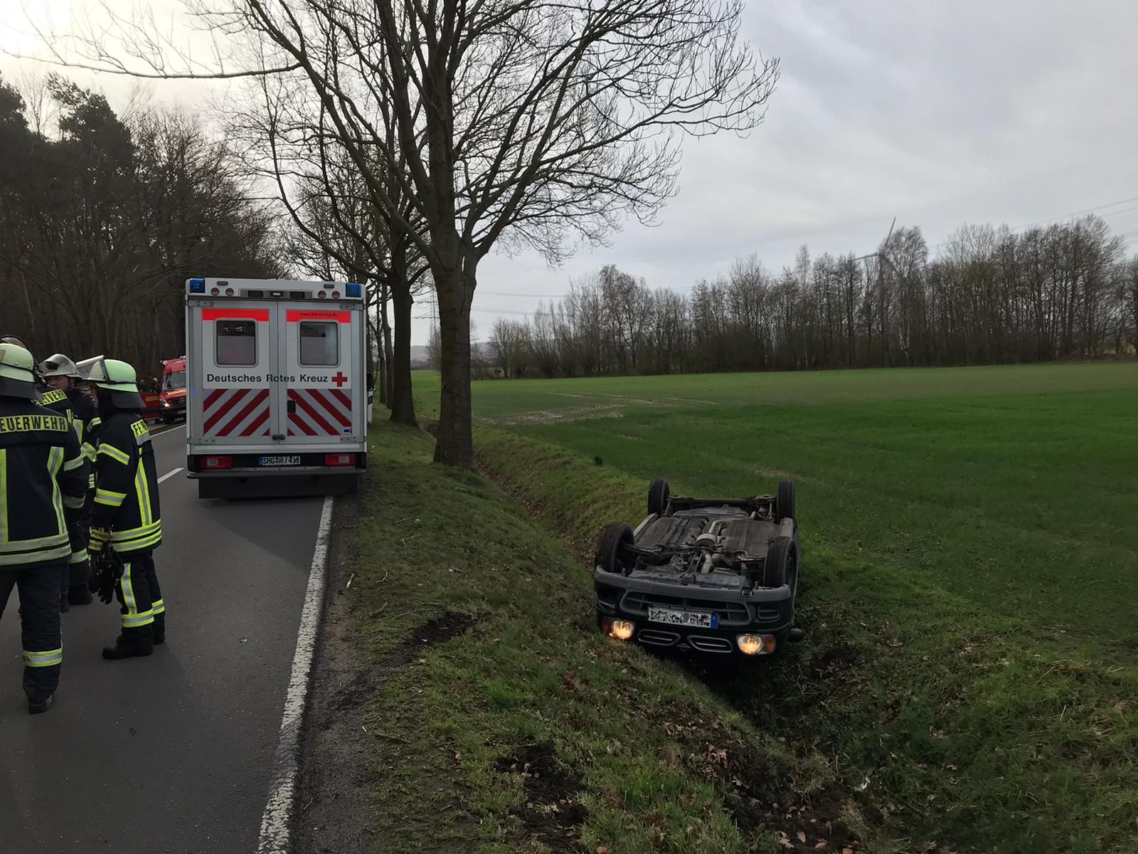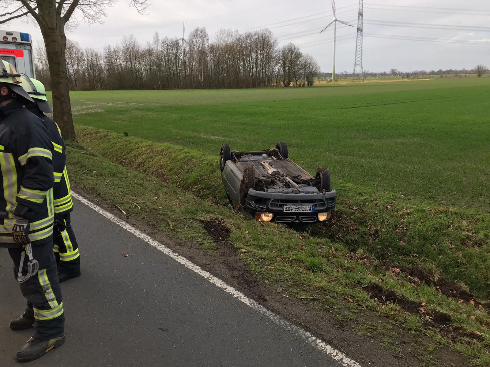 Der Rettungsleitstelle wurde ein PKW gemeldet, der sich überschlagen hat, nun auf dem Dach liegt und die Fahrerin in dem PKW eingeklemmt sein sollte.