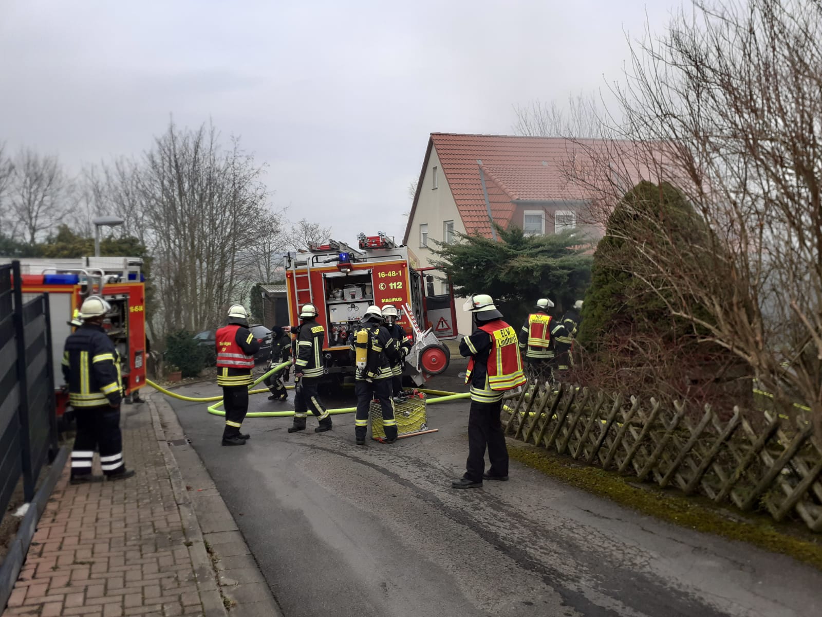 Zusätzlich wurde auch die Ortsfeuerwehr Bad Nenndorf alarmiert, um bei einer eventuellen Ausbreitung des Brandes auf die Drehleiter zurückgreifen zu können.
