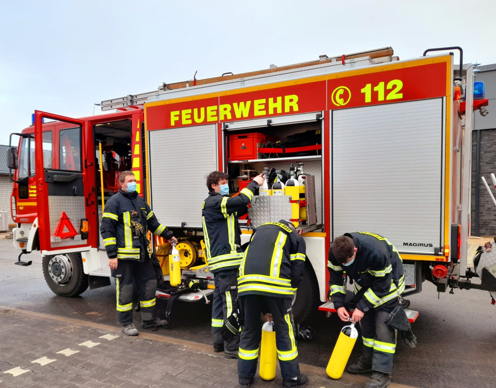 Vor Ort erkundete ein Trupp unter schwerem Atemschutz die Lage, dazu setze er ein Mehrgasmessgerät ein, das die Konzentration verschiedener Gase misst und beim Übertreten eines Grenzwertes einen Alarm abgibt.
